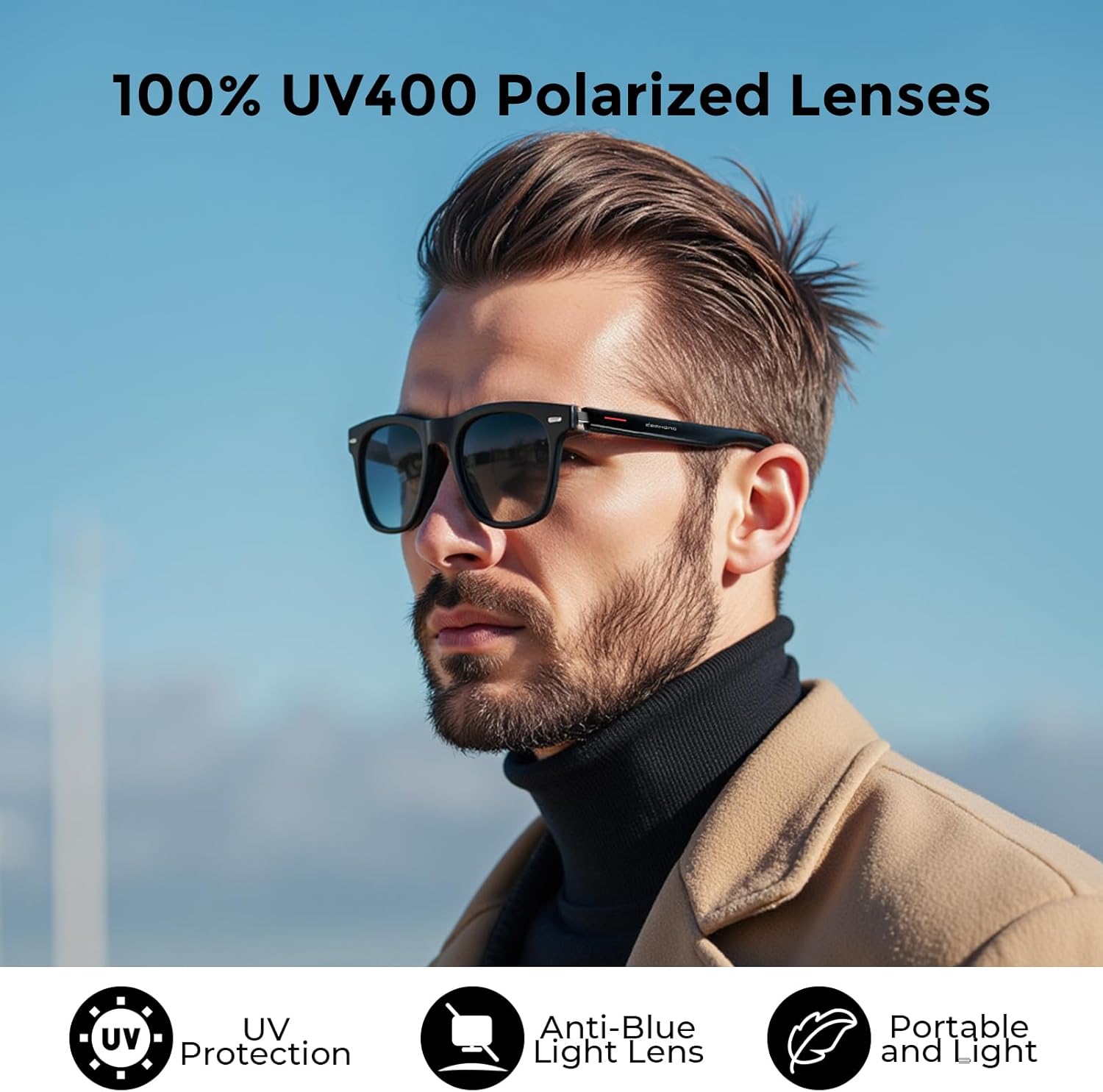 More than just a smart device, these glasses prioritise your vision health. The lenses feature UV Protection to shield your eyes from the sun’s harmful rays during outdoor activities, doubling as stylish sunglasses. Additionally, they include Anti-Blue Light technology, reducing digital eye strain during extended work or screen time. Designed for comfort and all-day wear, these glasses offer the perfect blend of style, technology, and health.